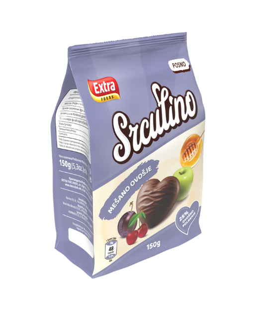Срцулино Мешано Овошје – вкусни колачиња во форма на срце со нежен крем и освежувачка арома на мешано овошје. Совршена комбинација на крцкава текстура и овошен вкус за вистинско уживање. Пакување од 150 грама.